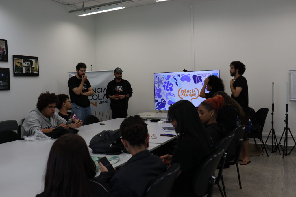 Em setembro, a Agência Escola estreou o “Ciência Pra Quê?”, em uma ação colaborativa com o Colégio Estadual Teotônio Vilela, localizado no bairro CIC em Curitiba. No “Ciência Pra Quê?” o(a) cientista deixa de ocupar o centro, e todos compartilham o mesmo espaço, reforçando a democratização do saber científico. O foco do novo projeto foram os integrantes do Clube STEAM, um grupo de ciências da instituição que oferece atividades no contraturno para alunos do oitavo ao terceiro ano do Ensino Médio, impulsionado pela Rede Paraná Faz Ciência dos Novos Arranjos de Pesquisa e Inovação (NAPI). O objetivo do clube é proporcionar experiências que vão além da sala de aula e trazem o universo da pesquisa científica para a educação básica.