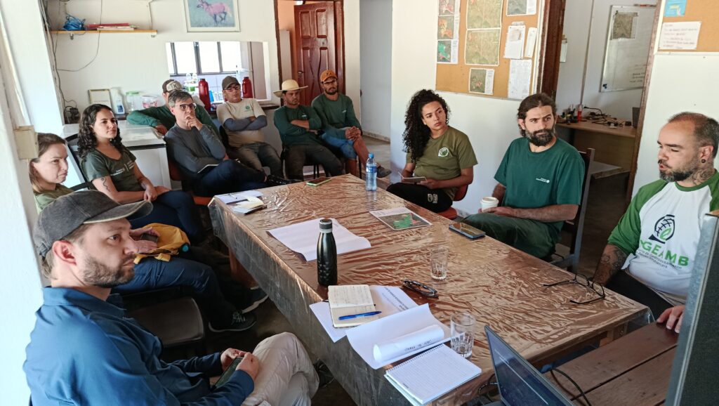 As atividades começaram com uma reunião com a equipe gestora da reserva, que apresentou o histórico de incêndios e o comportamento do fogo na área. “O fogo no Cerrado é um tema complexo. Ele não é apenas um vilão”, explica Gurgatz. “Além das ocorrências criminosas, há também usos tradicionais do fogo, em práticas agrícolas e culturais que fazem parte do território”.
