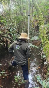 Outro desafio é que, para traçar os limites do terreno, a equipe precisa percorrer todo ele a pé, e são sempre longos trechos, carregando equipamentos no sol forte, vegetação fechada ou áreas alagadas. No meio do caminho, a natureza também se impõe. Cobras cruzando trilhas, bois soltos no campo e até javalis já interromperam a jornada, fazendo o grupo redobrar os cuidados e lidar com o inesperado. Já aconteceu até dos pesquisadores serem atacados por insetos, o que obrigou alguns deles a entrar correndo no rio para espantar o enxame. Apesar dos perrengues, a sensação entre a equipe do Lageamb é de missão cumprida. Na conversa entre os pesquisadores, também estava o engenheiro cartógrafo Rodrigo Fantin, que pontuou: “No fim, a gente gosta de estar no meio do mato, estar com o pessoal. Esse trabalho é uma coisa maior que nós. A gente vai passar, mas vai contribuir para isso, para um cadastro territorial. Deixar um legado”.