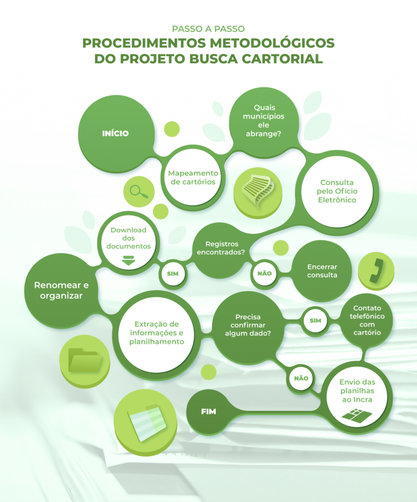 O Incra é o maior proprietário de terras do Brasil e administra, no Paraná, um patrimônio que ultrapassa cinco milhões de hectares. Parte das áreas administradas pelo Instituto foram herdadas de órgãos que o antecederam, o que resulta em mais de 60 anos de ações de regularização fundiária no Paraná. “Ao longo dessas décadas, seria natural que informações se perdessem, e de fato isso aconteceu. O Incra tem realizado diversas atividades de levantamento e compilação de dados”, explica o funcionário do Incra e fiscal do projeto, Luciano Guimarães. “Sendo uma tarefa hercúlea, o Projeto Busca Cartorial nos ajuda a resgatar o tamanho real do patrimônio territorial do órgão, o que impacta não apenas o Incra, mas também a população em geral, rural e urbana, e diferentes órgãos públicos na faixa de fronteira”.